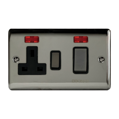 Caradok 45A switch neon 13A switched socket neon Black Nickel, Metal Switch