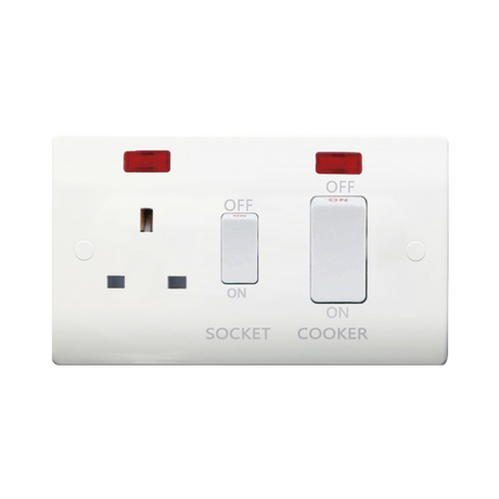 Caradok 45A DP Cooker Control Unit White Switch c/w Neon