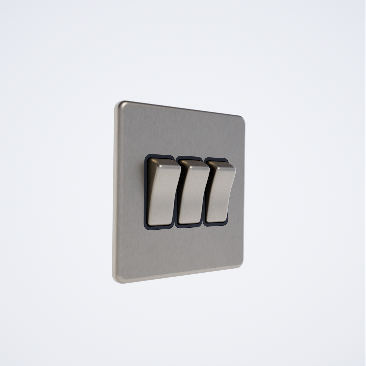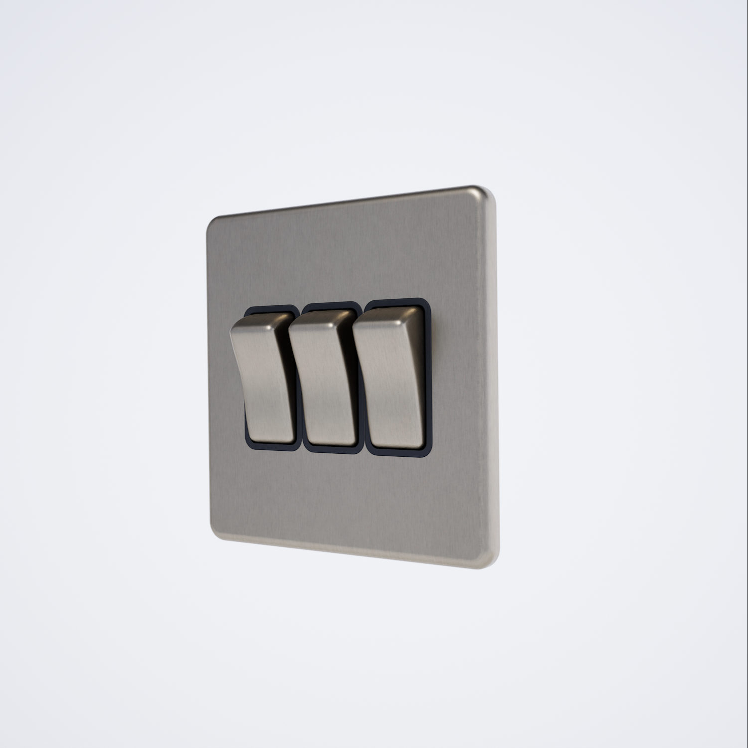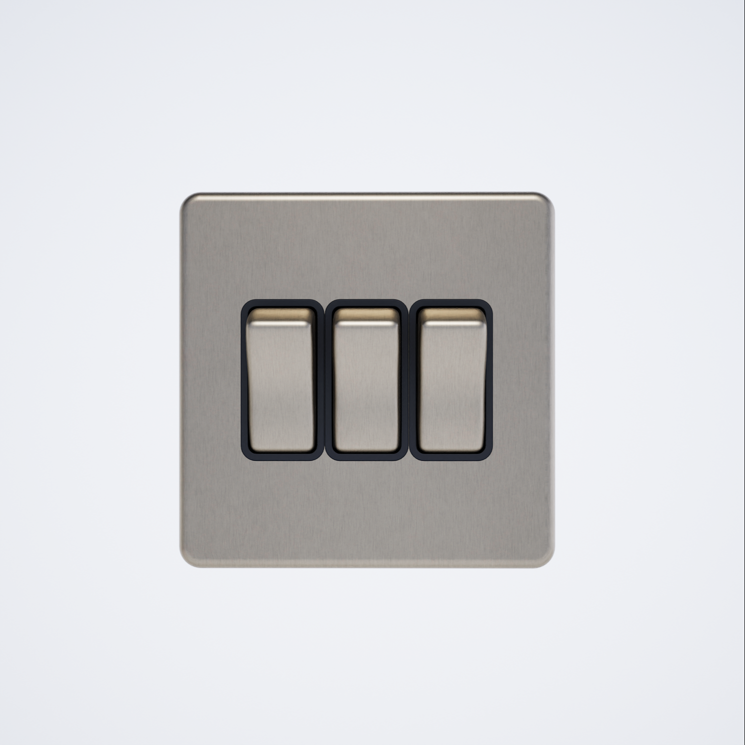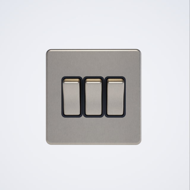 10A 3-gang two-way switch with a screwless design, finished in black brushed chrome.