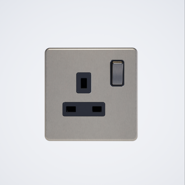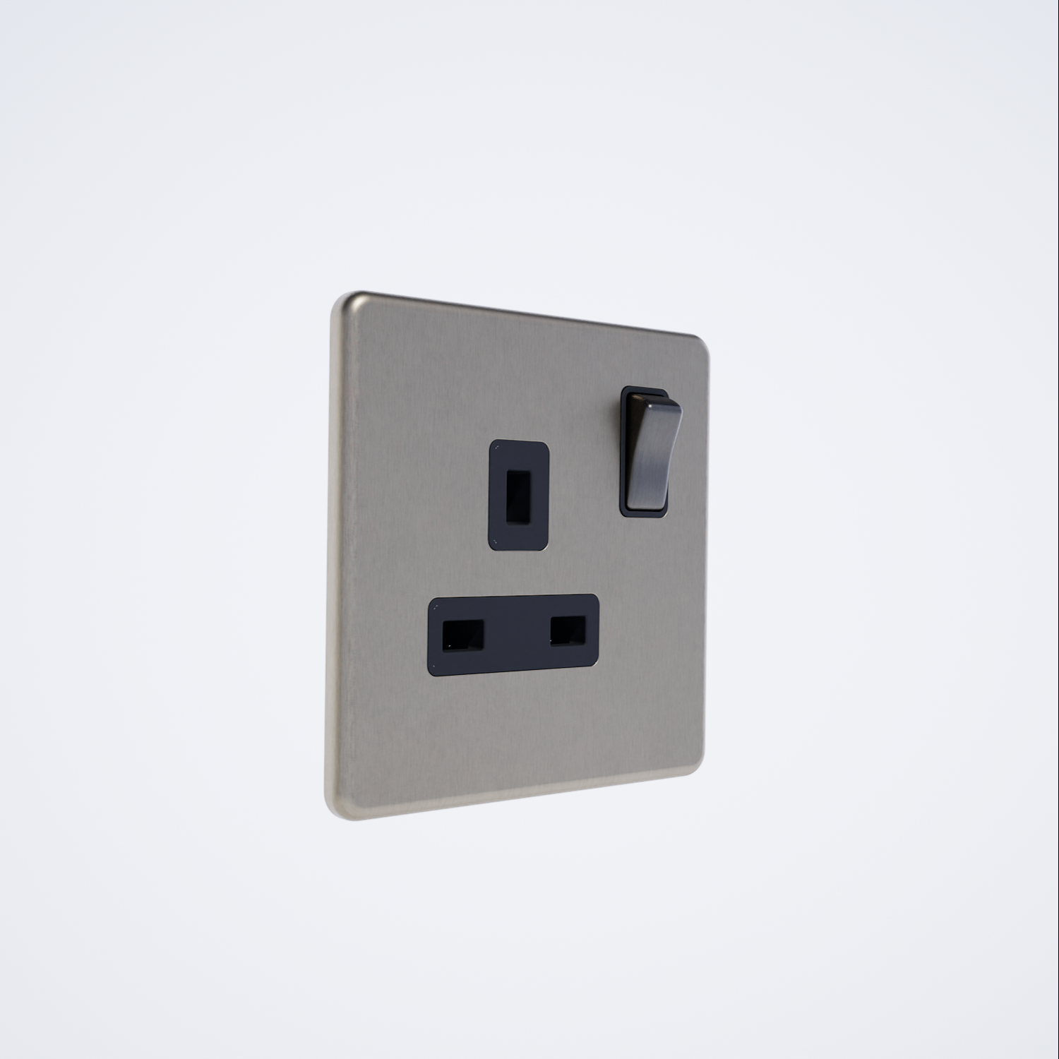 single plug socket in brushed steel with black inserts is ordered in from our warehouse and will be shipped as soon as we receive it.