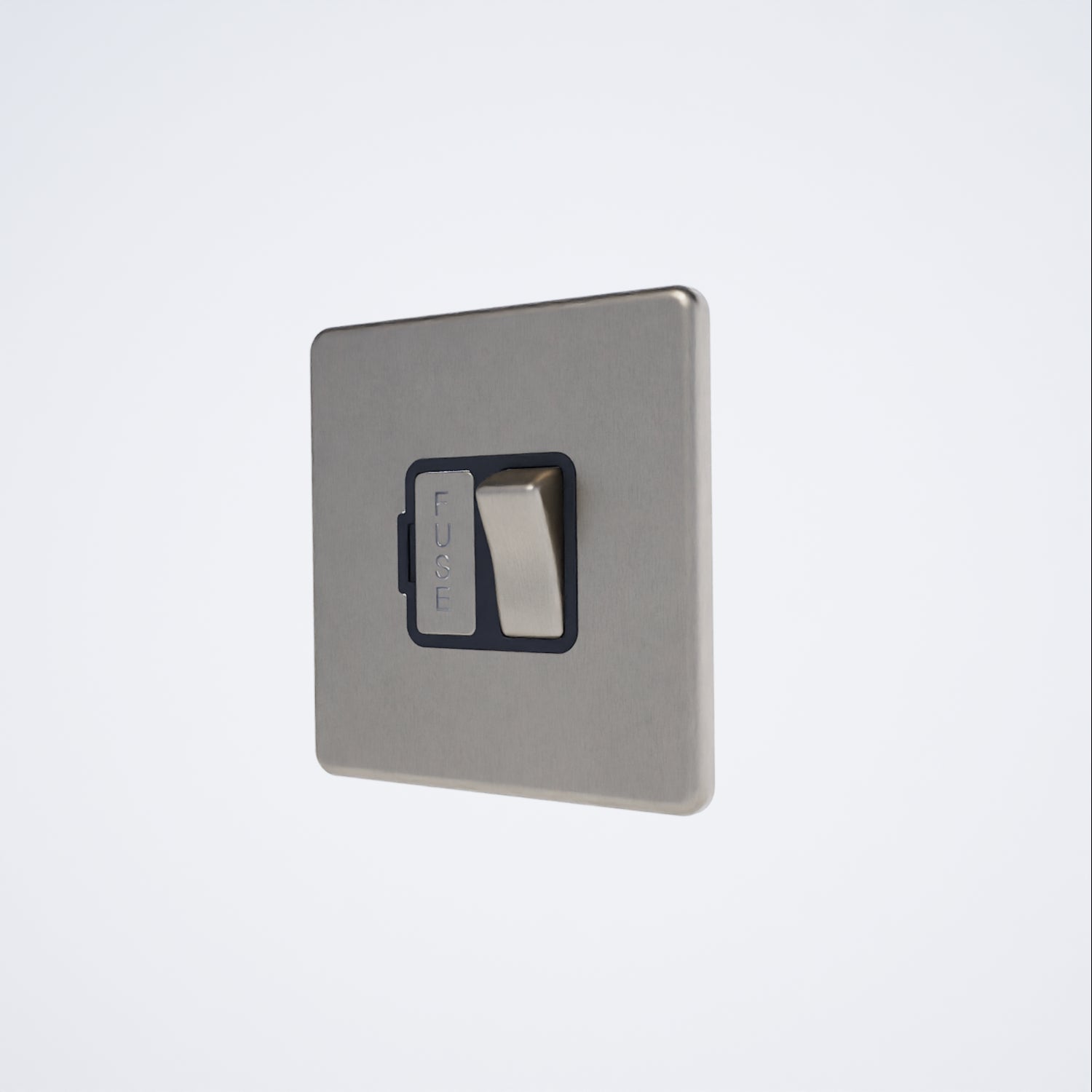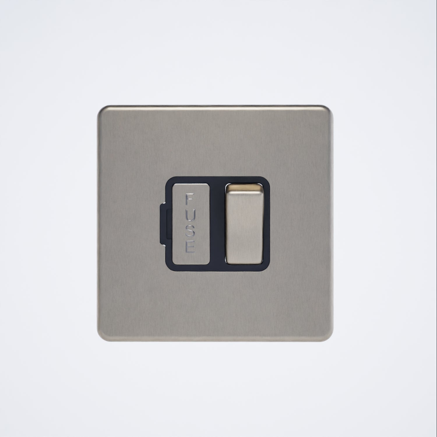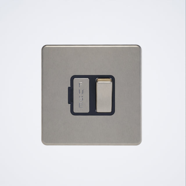 This 13A switched spur in brushed chrome features a screwless design complemented by sleek black inserts for a refined finish.