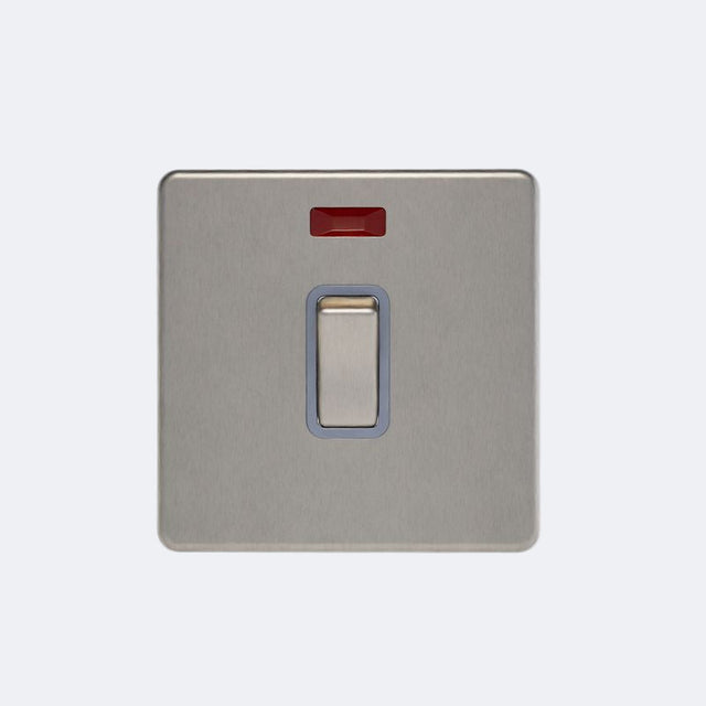 screwless 20A switch with neon light in brushed steel with grey inserts