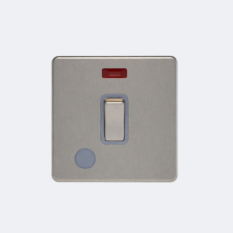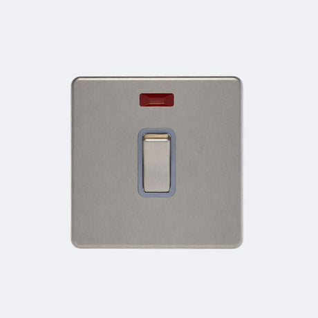 Caradok - The Flat - Screwless 1G 45A DP Switch c/w Neon Brushed Chrome Grey Insert