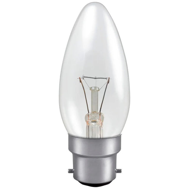 This clear candle bulb features a 240v voltage, 60w power rating, and a Ba22d/BC base with a 35mm length, designed for precise and reliable lighting applications.