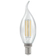 Dimmable LED filament 35mm bent -tip candle lamp with clear finish.